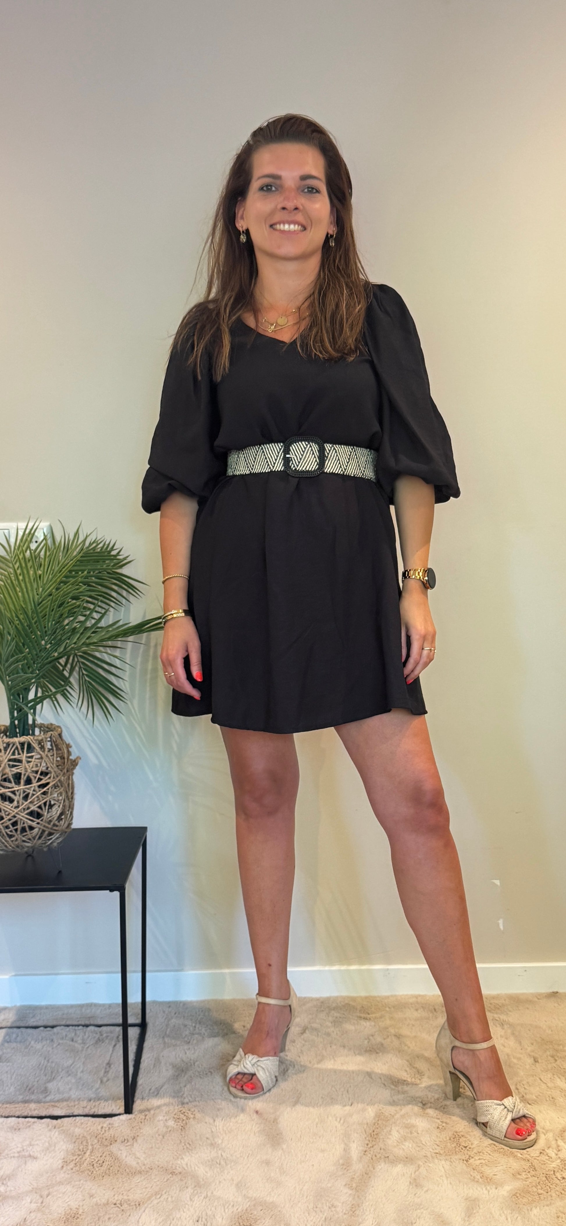 Perfect voor een feestje, bruiloft of gewoon voor bij het strand. Je kunt het stylen met een hakje, slippers of met een stoere sneakers. Het jurkje heeft een mooi ceintuurtje die je evt kan vervangen door een ander ceintuurtje/riem om een andere look te creëren. Het jurkje het een ballonmouw en een kleine pof in de schouders. Ook verkrijgbaar in het fuchsia en beige.