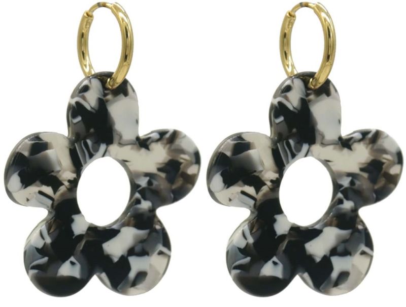 Mooie gouden oorbel met in zwart/wit in de vorm van een bloem