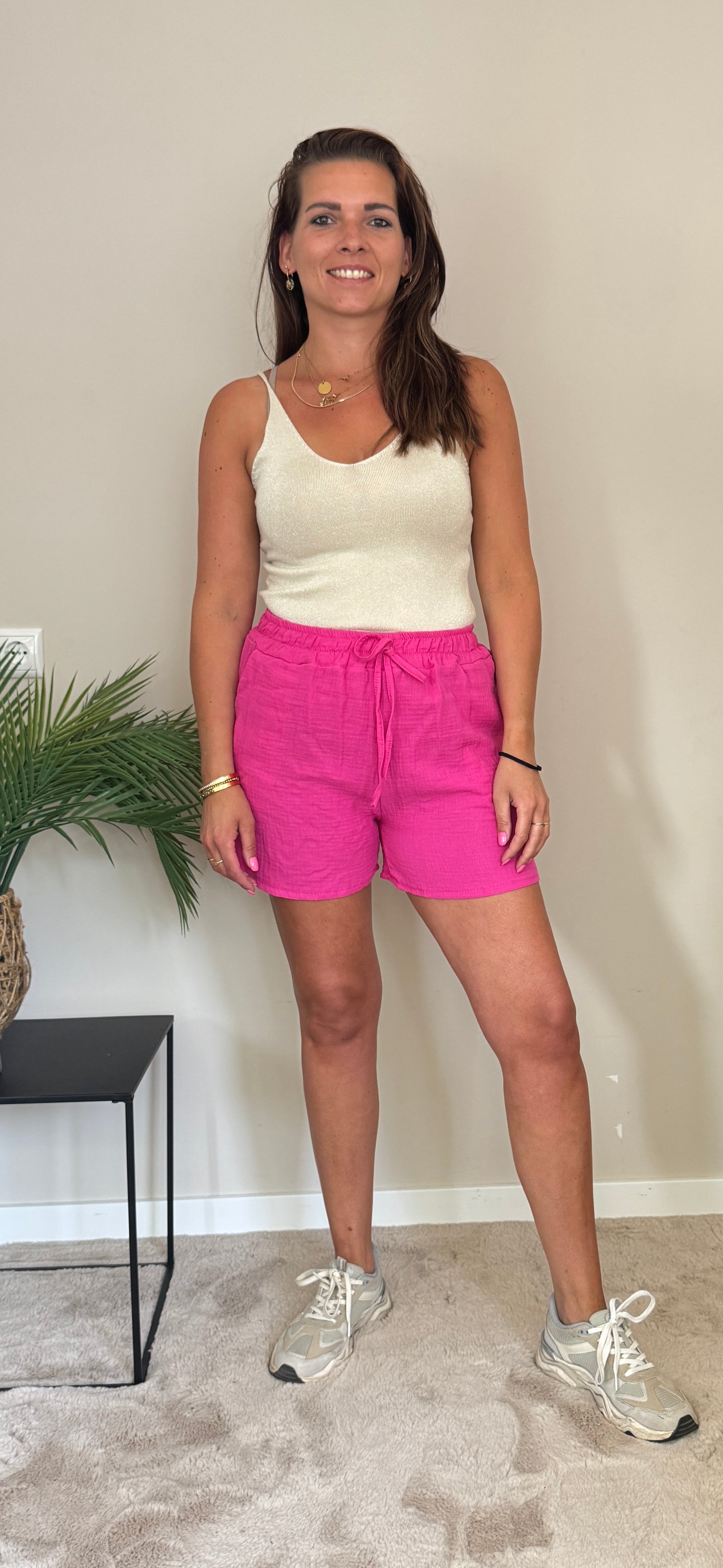 Shortje Cato mag niet ontbreken in je kast. Deze short is bijna 100% voorzien van katoen en dat voel je. Hij zit onwijs lekker. Hij heeft 2 steekzakken van voren. Ook verkrijgbaar in de kleuren blush, beige en zwart.